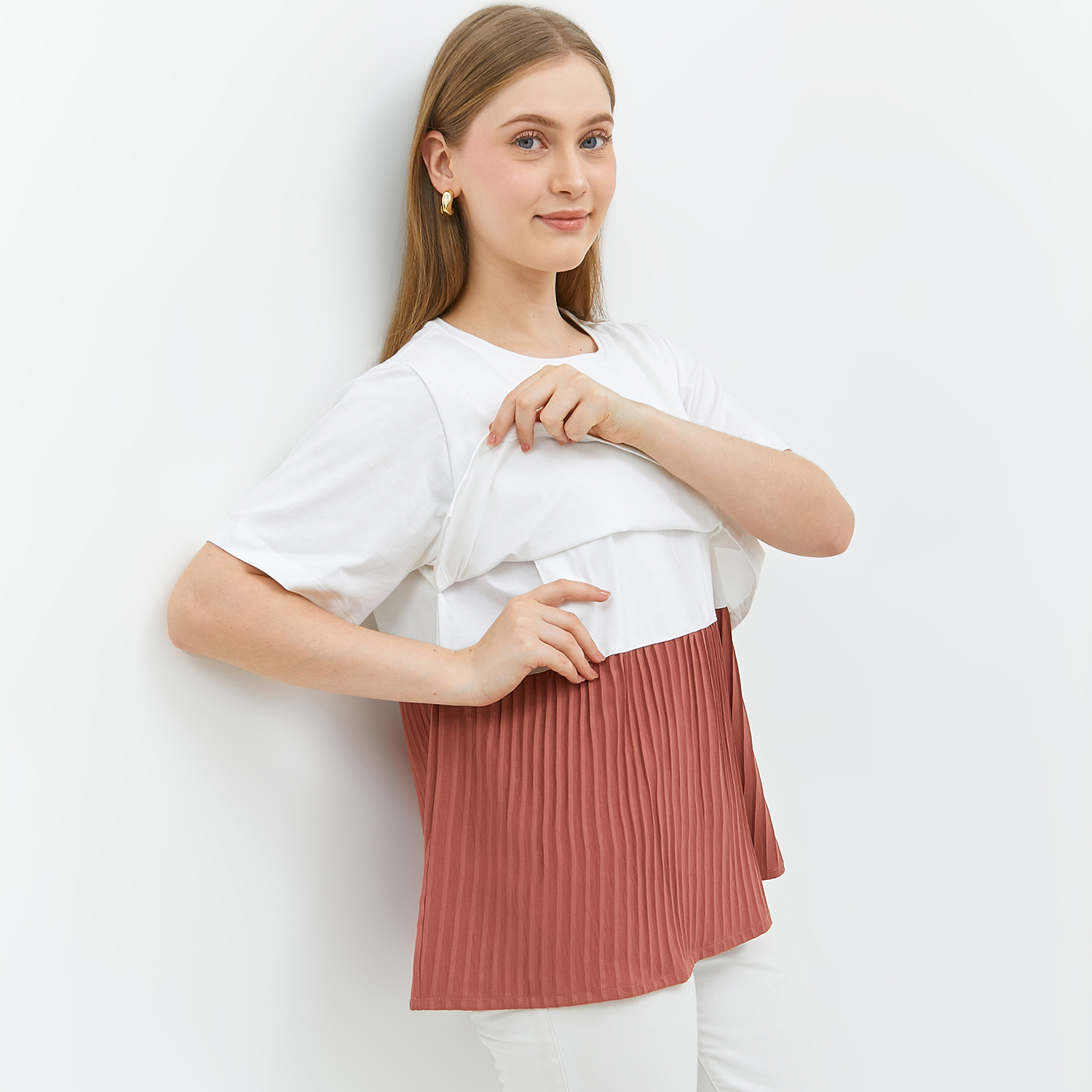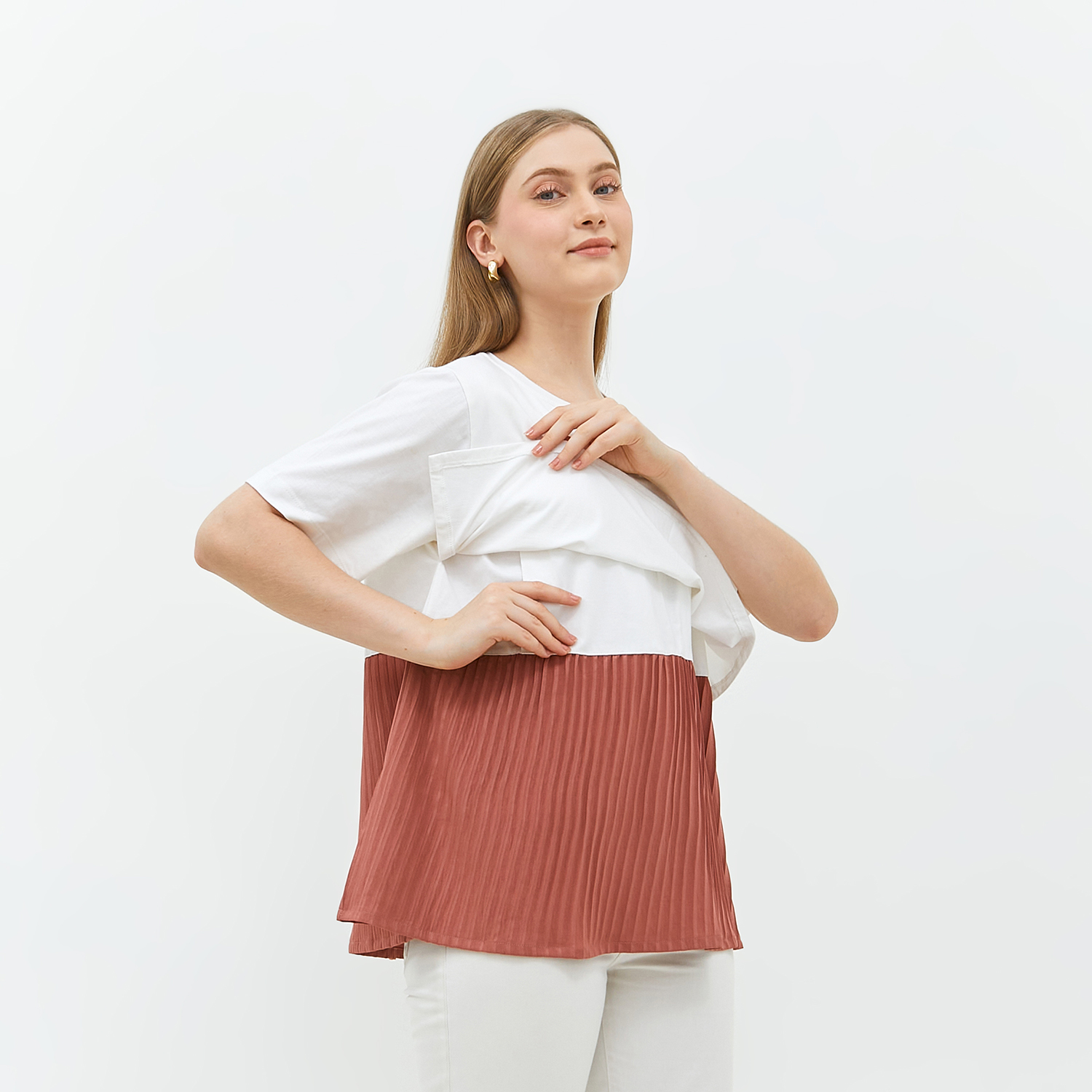 Alana blouse terbuat dari kombinasi bahan plisket dan combed 30s yang adem dan nyaman digunakan moms. Memiliki bukaan menyusui kanan dan kiri tanpa kancing dan resleting sehingga memudahkan mom saat akan menyusui si kecil. KHUSUS WARNA GREEN DAN DUSTY ROSE Alana blouse ini di lapis layer yang bisa berfungsi sebagai apron. Cocok dipakai saat masa kehamilan sampai menyusui.