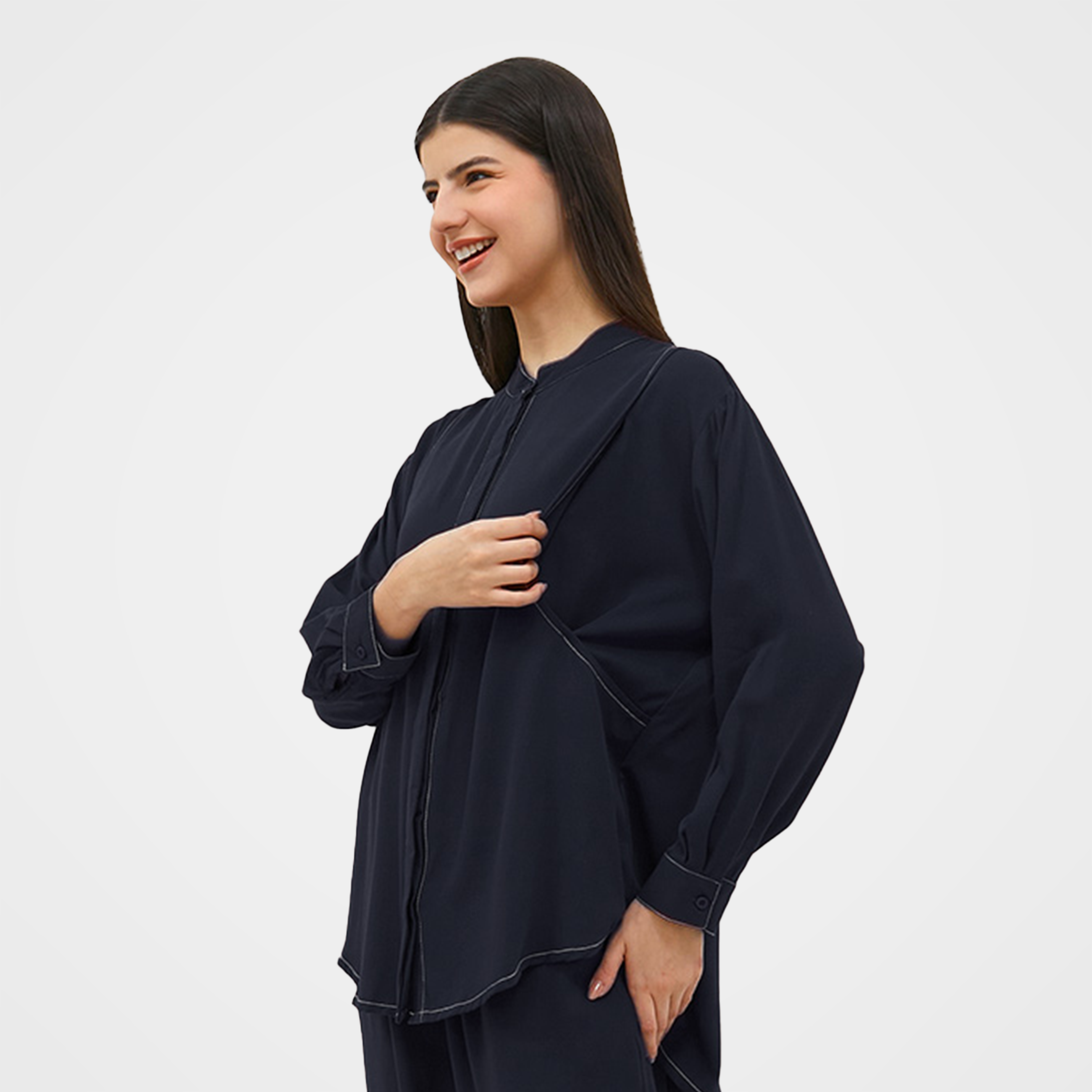 Ayesa oneset ini terbuat dari bahan rayon yang dingin serta lembut sehingga nyaman untuk dipakai moms. Memiliki kancing yang dapat di buka namun tetap ada bukaan menyusui kanan dan kiri tanpa kancing dan tanpa resleting sehingga memudahkan mom saat akan menyusui si kecil, Celana nya kolot serta full karet sehingga sangan leluasa untuk ibu hamil dan menyusui.