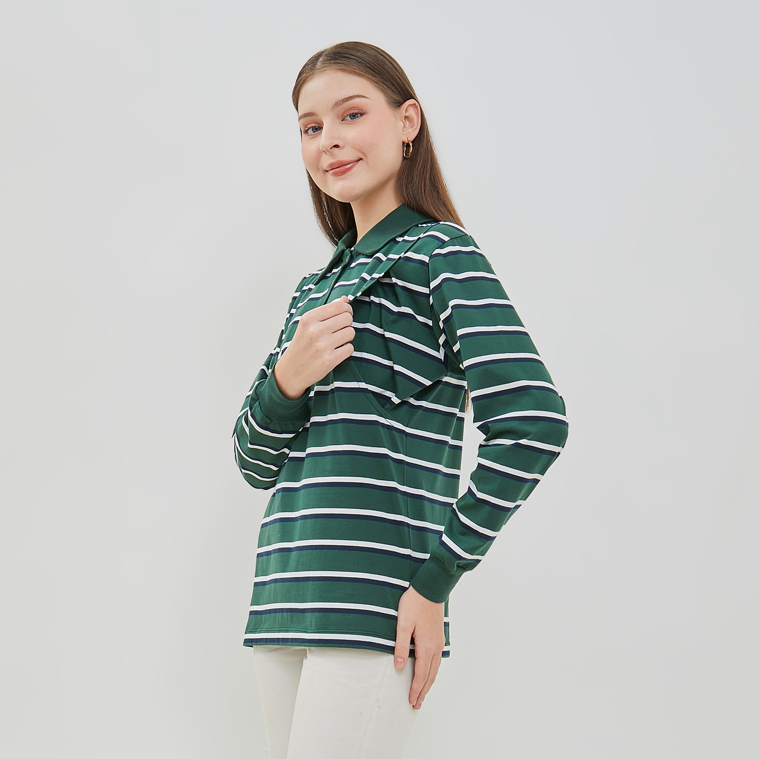 Carly blouse panjang ini terbuat dari cvc salur yang halus, lembut sehingga nyaman digunakan. Bukaan menyusui kanan dan kiri tanpa kancing dan tanpa resleting sehingga memudahkan mom saat menyusui si kecil. Carly blouse ini cocok dipakai saat masa kehamilan sampai menyusui.