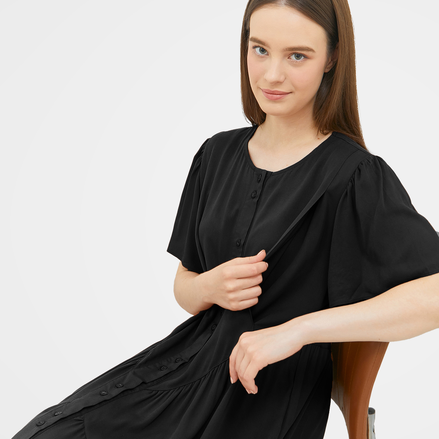 Tihani Sleepwear ini terbuat dari bahan rayon yang dingin serta lembut sehingga nyaman untuk dipakai moms. Bukaan menyusui kanan dan kiri, tanpa kancing dan tanpa resleting sehingga memudahkan moms saat akan menyusui si kecil. Tihani ini dapat di pakai saat kehamilan sampai menyusui.