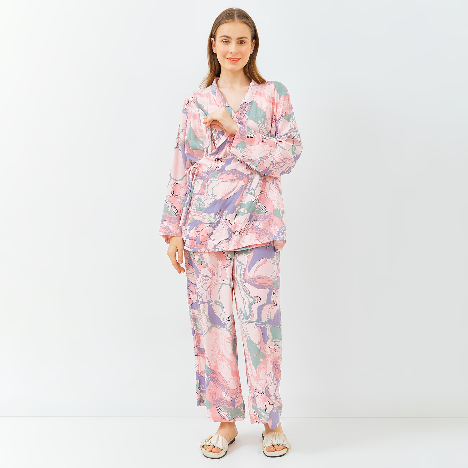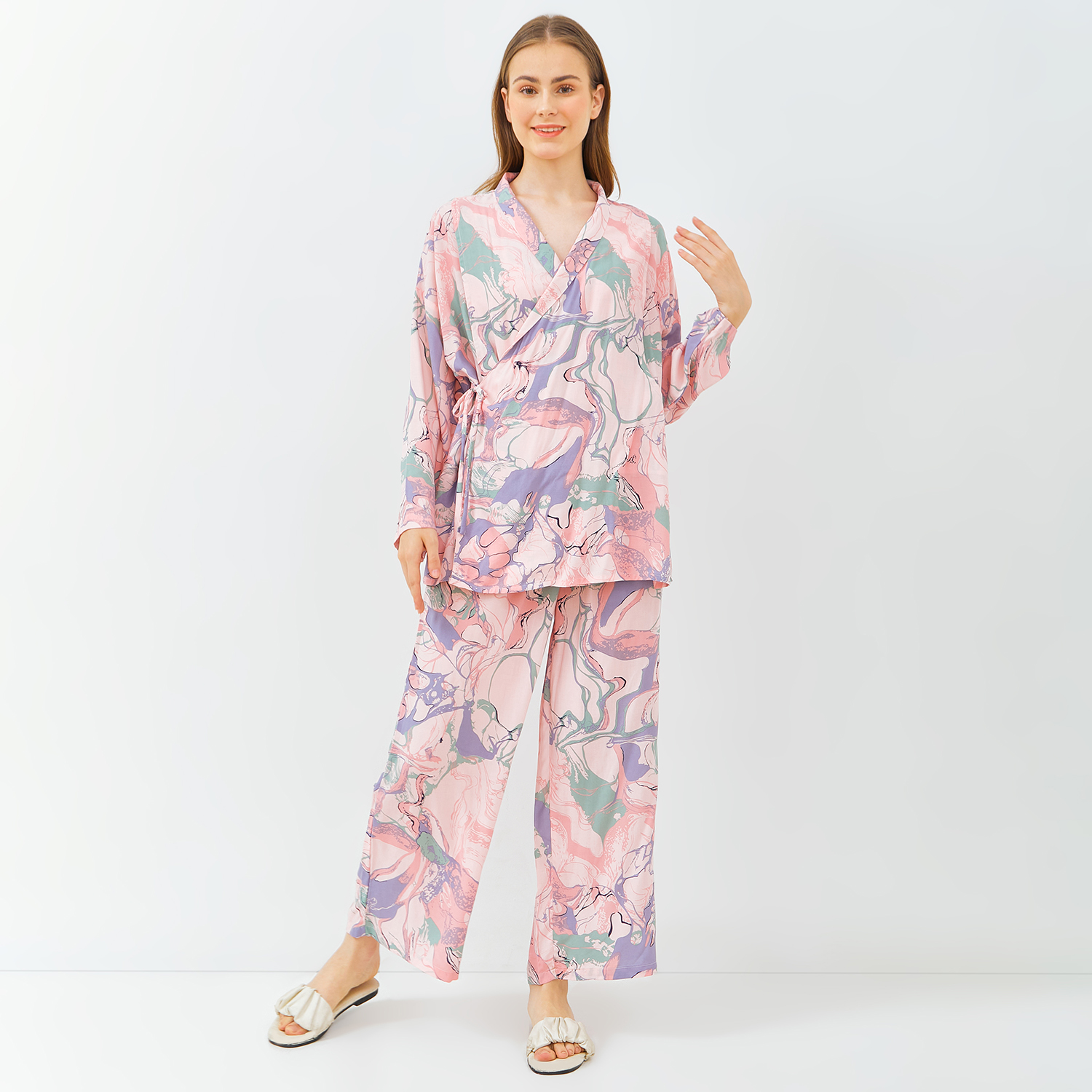 Gaye Sleepwear ini terbuat dari bahan rayon motif yang dingin serta lembut sehingga nyaman untuk dipakai moms. Bukaan menyusui kanan dan kiri, tanpa kancing dan tanpa resleting sehingga memudahkan moms saat akan menyusui si kecil. Gaye ini oneset antara celana panjang dengan blouse kimono lengan panjang, dapat di pakai saat masa kehamilan sampai menyusui.